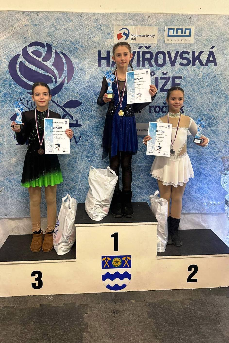 Domácí závodnice se popraly o nejvyšší příčky. V kategorii nováčků starších si Alexandra Šiřinová vybruslila krásné 3. místo z 15 závodnic. Nejúspěšnější závod však proběhl v kategorii mladších žaček, kdy havířovské závodnice braly zlato, stříbro i bronz. Na 1.místě se umístila Amálie Mertha, na 2. místě Marie Steblová a na 3. místě Andrea Sentivan,z celkem 26 závodnic.